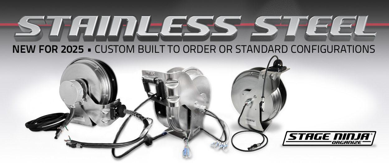 Stage Ninja® is a manufacturer of retractable cable reels and custom cable reels for nearly all applications, including robot, pendant, industrial, stage, touring, classroom, office, medical and more. Stage Ninja® also manufactures high quality mounts for microphones, phones, tablets, cameras, action cameras, and more.