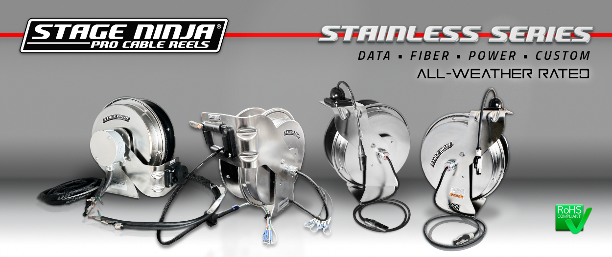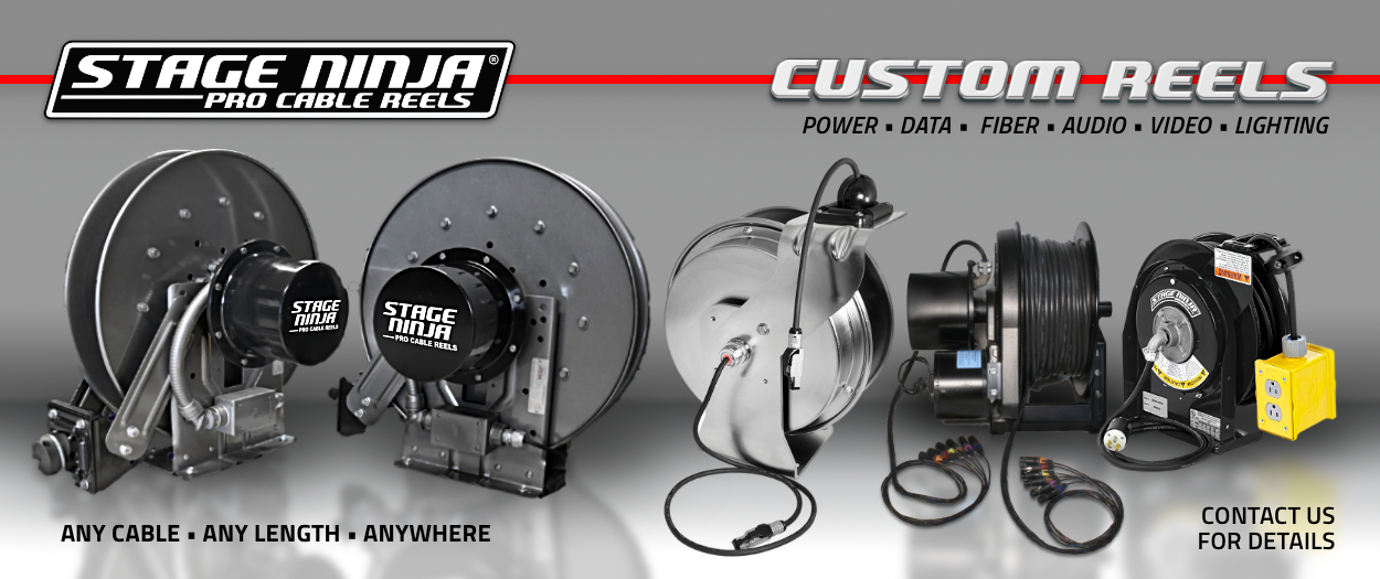 Stage Ninja® is a manufacturer of retractable cable reels and custom cable reels for nearly all applications including robot, industrial (crane reels), stage, touring, classroom, office, medical and more. Stage Ninja® also manufactures Ninja Clamps™- professional device mounts for microphones, phones, tablets, cameras, action cameras, recording devices, and more.