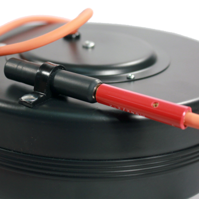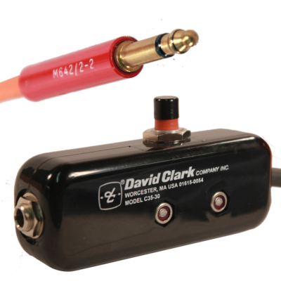 Stage Ninja’s ATC-30-DC retractable push to talk aviation cable reel is the David Clark version of the atc-30-S. The reel instantly retracts 30 feet of 20/3 AWG safety orange premium microphone cable. The retractable end is outfitted with a male 1/4 inch Connector and is equipped with a coated, braided steel strain relief loop to relieve tension on connectors (see picture). The static end is an 8 foot 20/3 AWG safety orange premium microphone cable with a David Clark push-to-talk module with female 1/4 inch outlet. The powder coated black steel, military grade housing comes standard with a at mounting strap that can be fastened to the frame rail of the tug or push back tractor. The case features a sheath for the 1/4” connector to eliminate swinging (see pictures). Eliminates cord winding, cord tangles, cord damage and trip hazards with instant cable retraction. This is an excellent reel for mobile, fast paced applications.