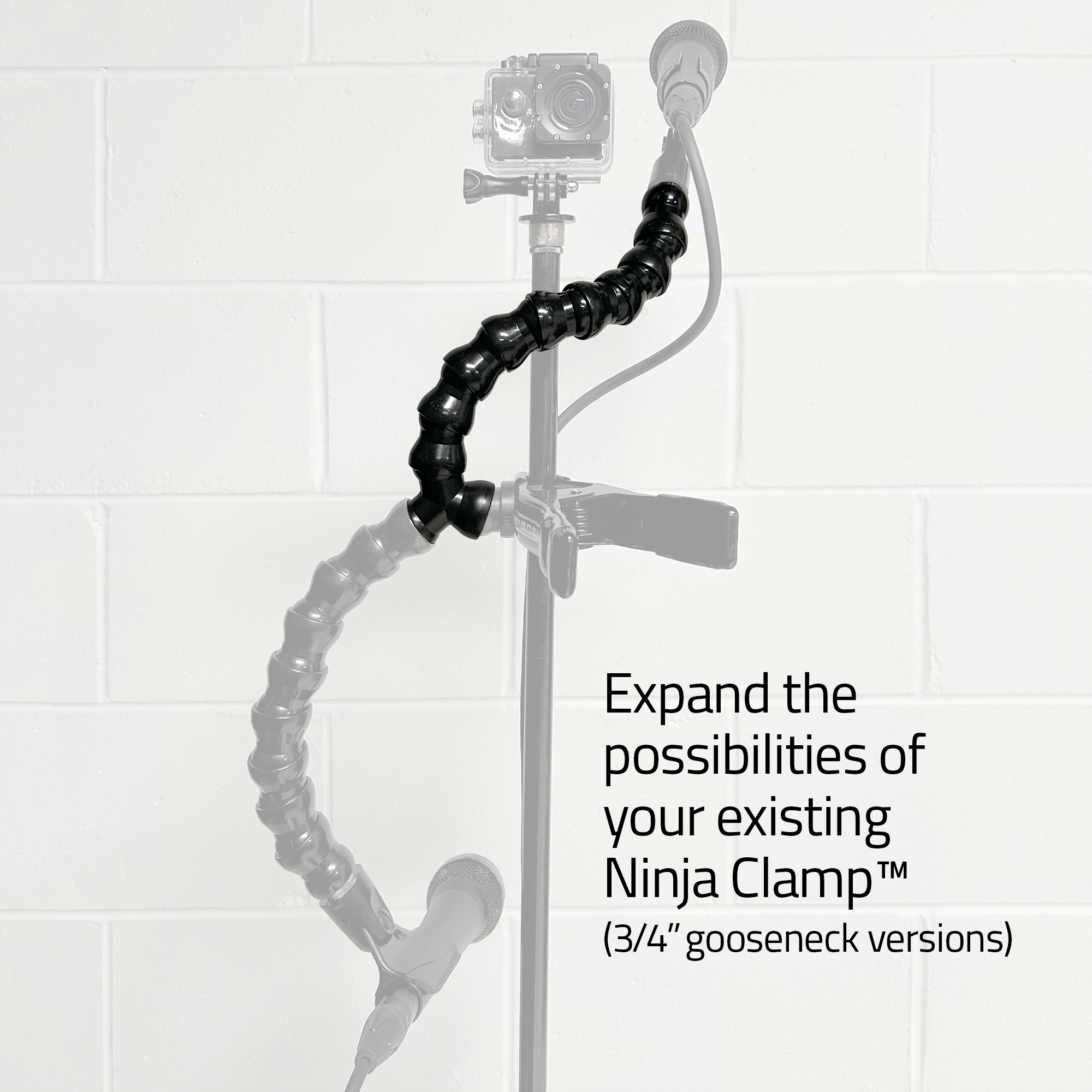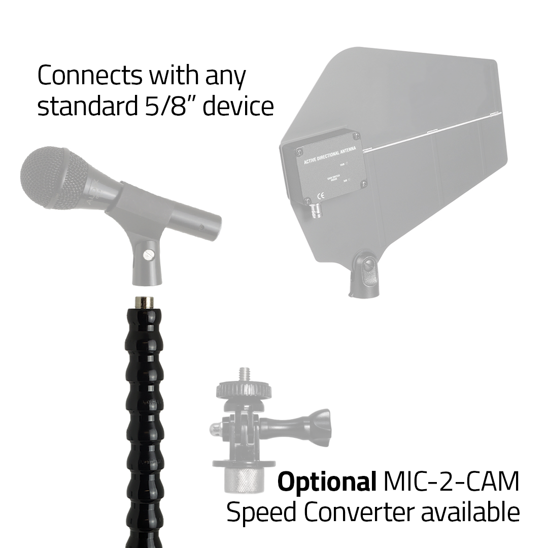 Expand your possibilities with the Ninja Clamp™ “Y” Mic Clamp Expansion kit for MIC and CAM models. The SAI Kit includes a 9 segment gooseneck with 5/8″ mic tip and a Y-adapter for dual microphone, camera, or mixed device setups. Expand the capabilities of your MIC-12-CB/MB, CAM-12-CB/MB, TAB-8-CB & FON-12-CB