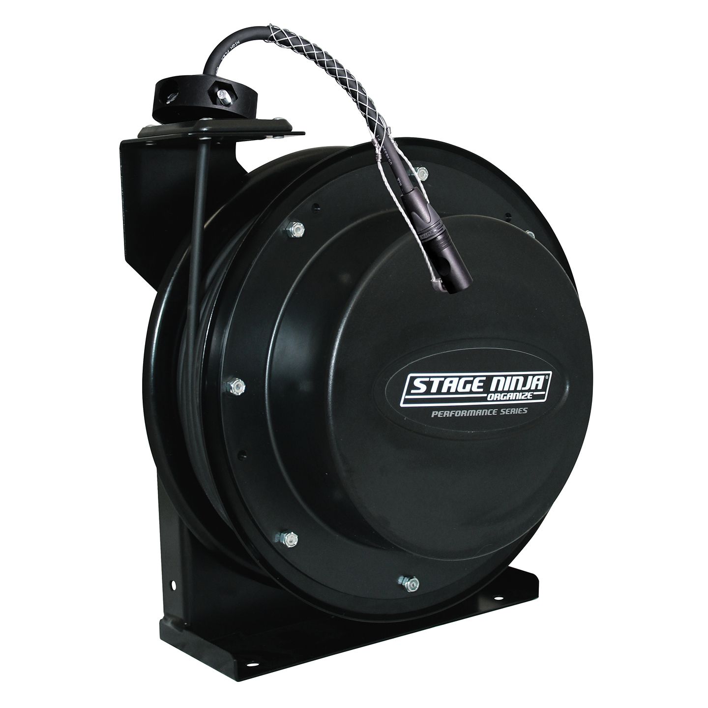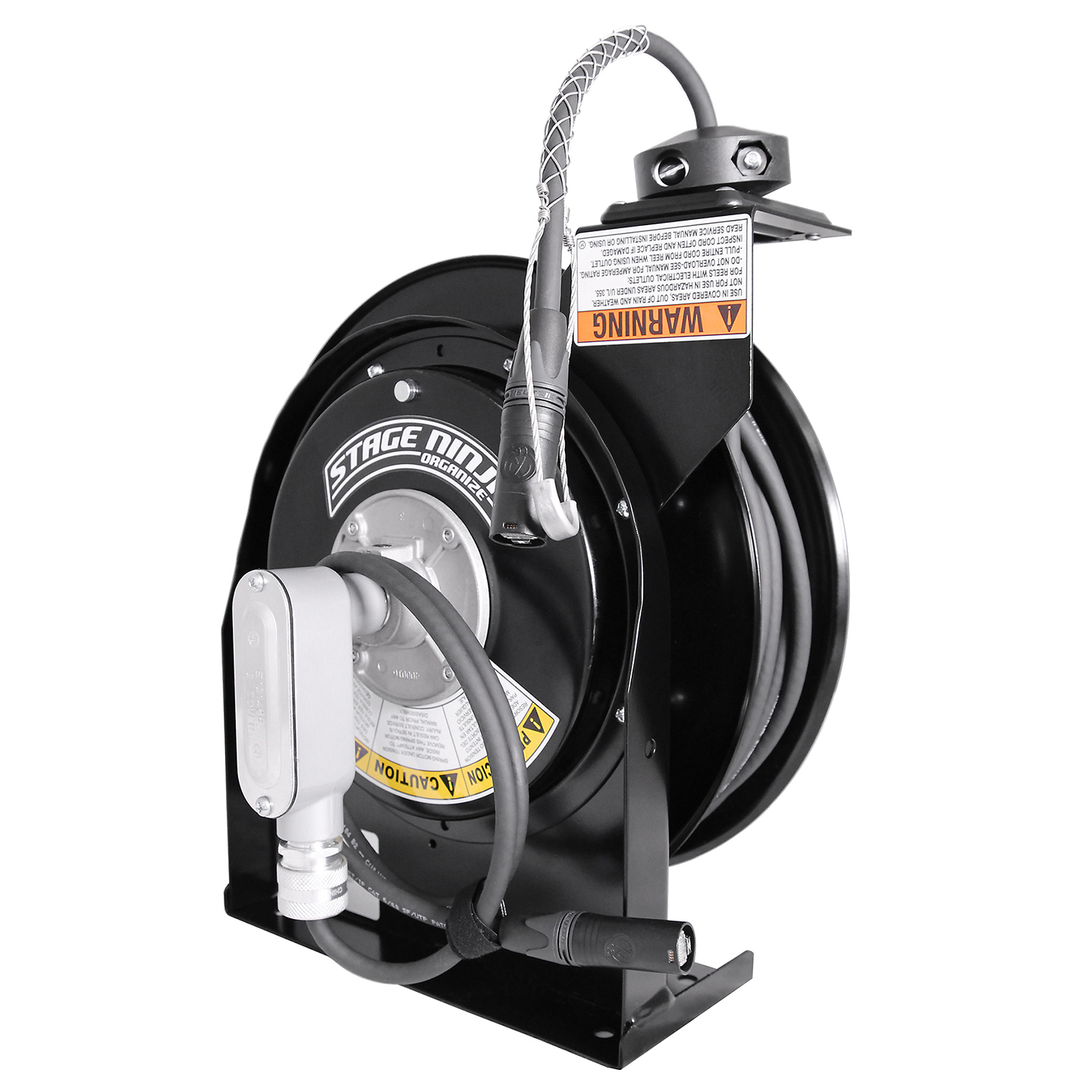 Click PDF Icon for Spec Sheet Premium 24 AWG hi-flex tactical shielded CAT6 cable with genuine Neutrik® Ethercon connectors in an industrial powder coated steel housing with integrated mounting base. Configured as constant tension for use with trusses, battens and other moving equipment and includes bus drop grip installed near the retractable connector to provide strain relief. The retractable end is 50 feet and the static end is 3 feet, both with Neutrik Ethercon (male) connectors. (Available as locking/releasing for stage floor, lab and classroom environments, AV carts, etc. Call to discuss.)