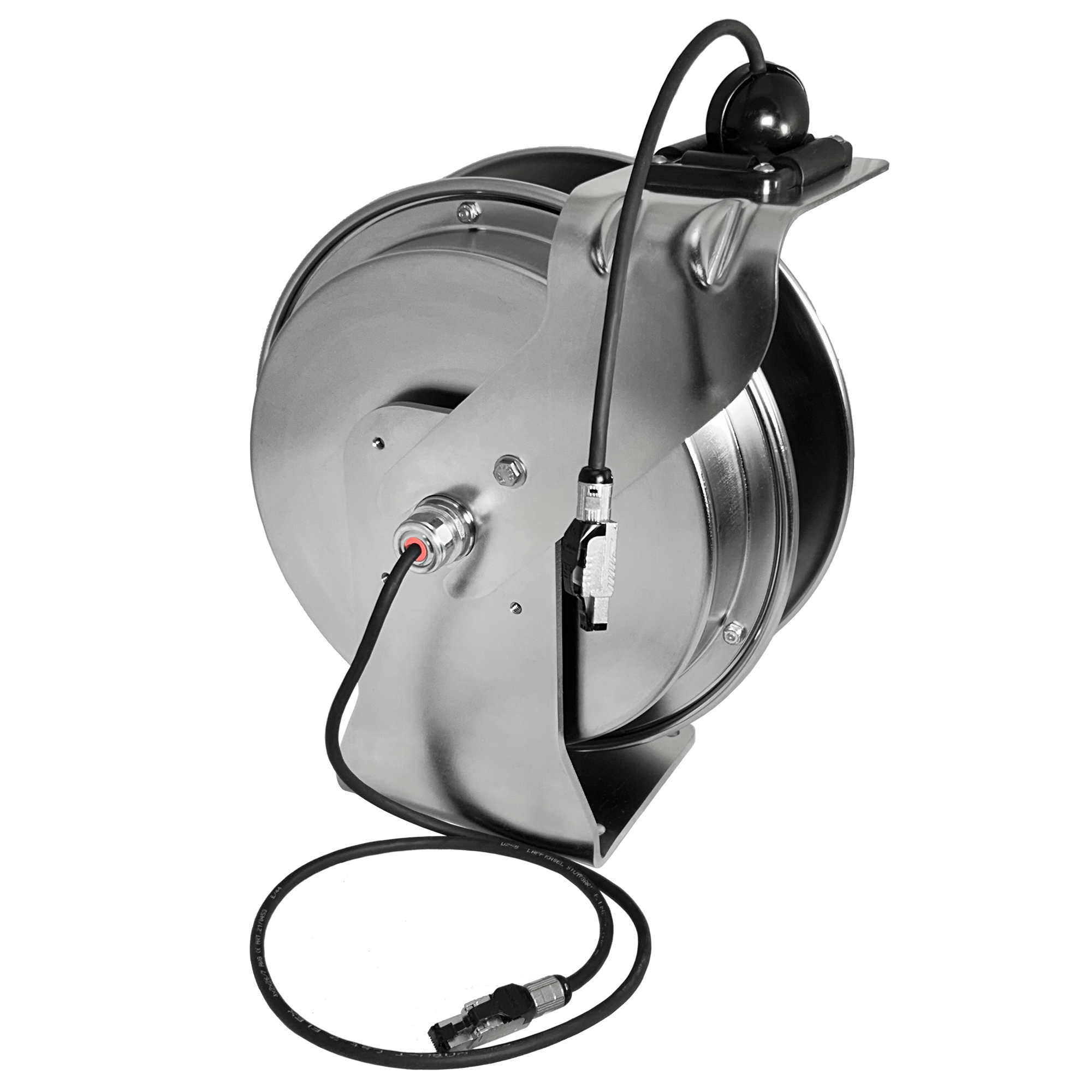 Available in standard or custom configurations, this locking and releasing reel is ideal for laboratories, medical environments like operating rooms, site-mobile AV applications, military and aerospace applications, and is suitable for outdoor environments.